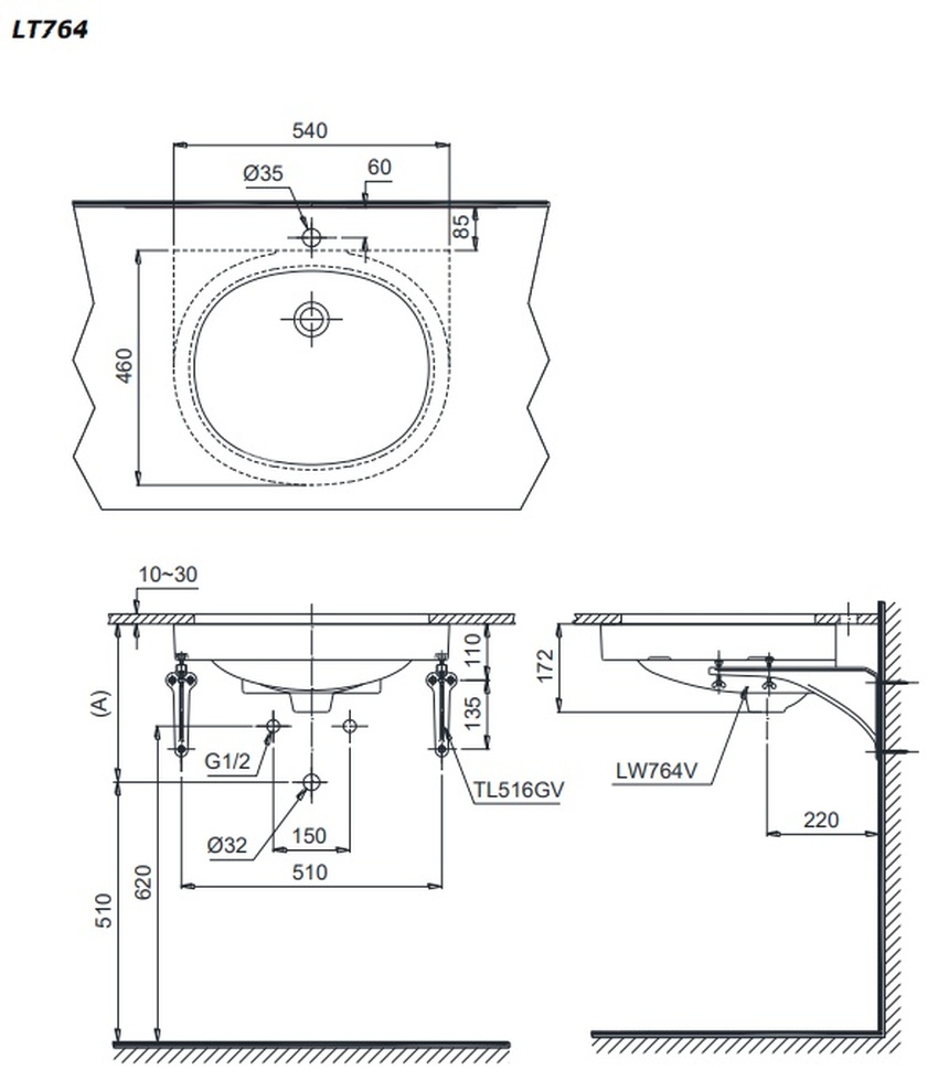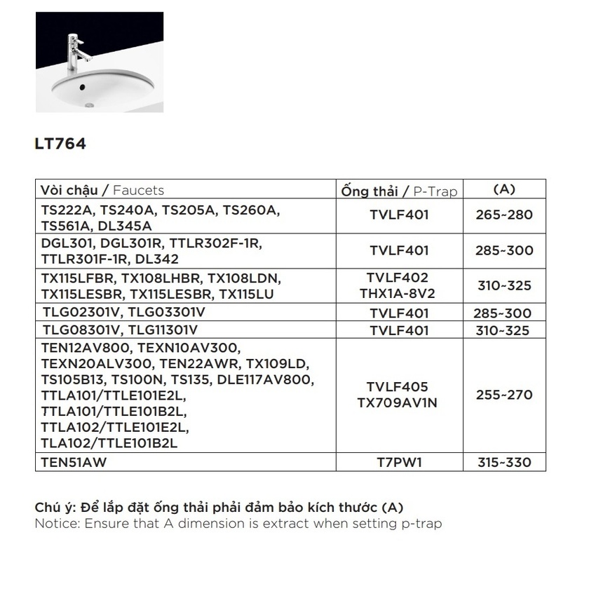 Giới thiệu sản phẩm Chậu rửa mặt lavabo âm bàn TOTO LT764
