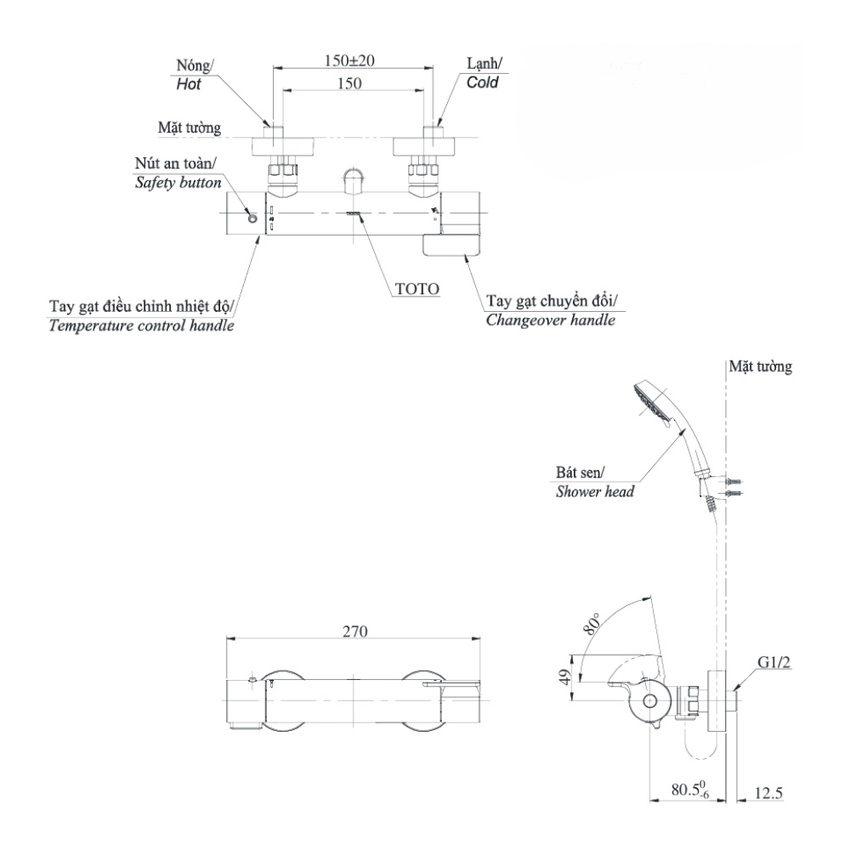 Củ sen tắm nhiệt độ GG Series TOTO TBV03431V – Lựa chọn hoàn hảo cho không gian phòng tắm