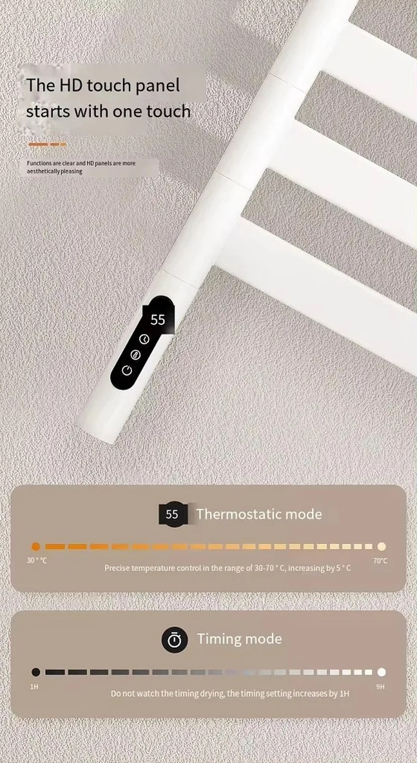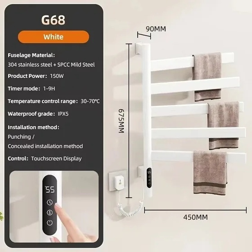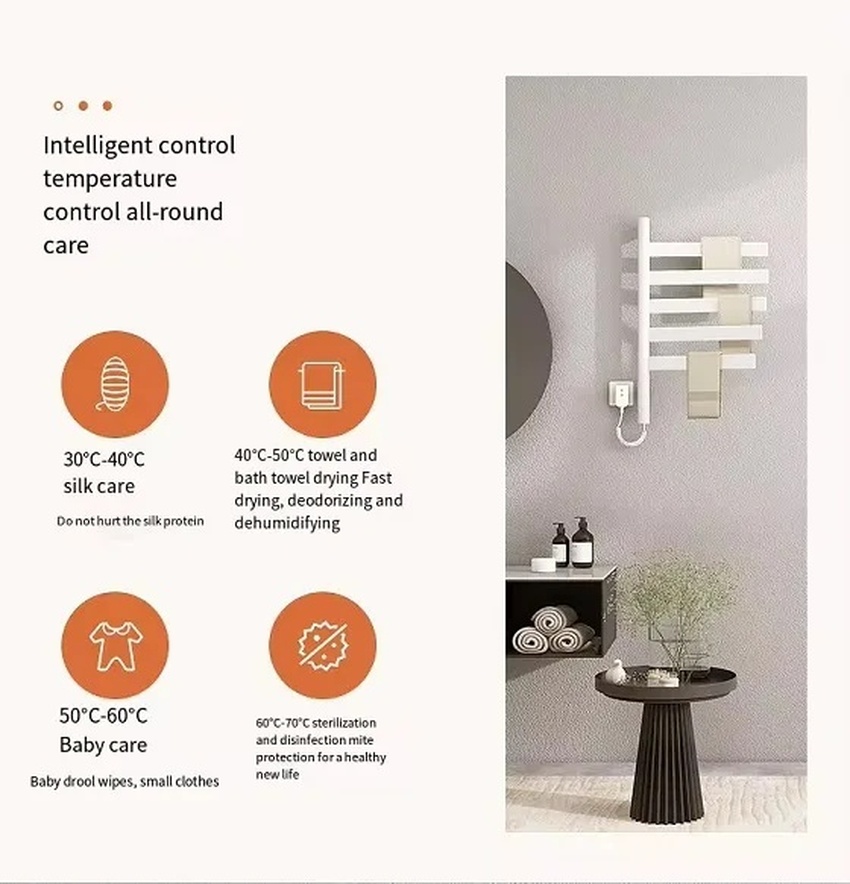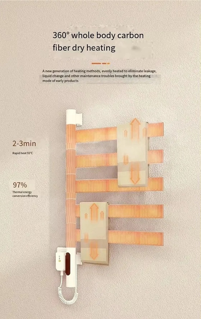 Sản phẩm tích hợp công nghệ sưởi ấm sợi Carbon tiên tiến, cho phép kiểm soát nhiệt độ từ 30-70℃. Điều này không chỉ giúp khăn khô nhanh mà còn tiết kiệm điện năng với mức tiêu thụ chỉ 120W.