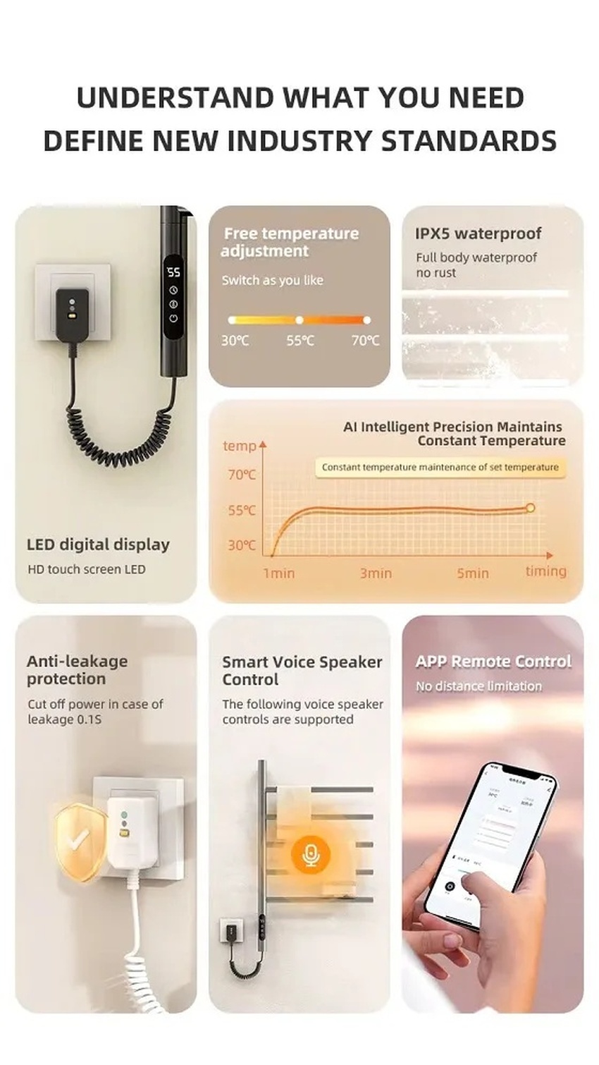 Giàn sấy khăn tắm khăn mặt màu đen kết nối APP điện thoại thông minh Miken G63B-Wifi
