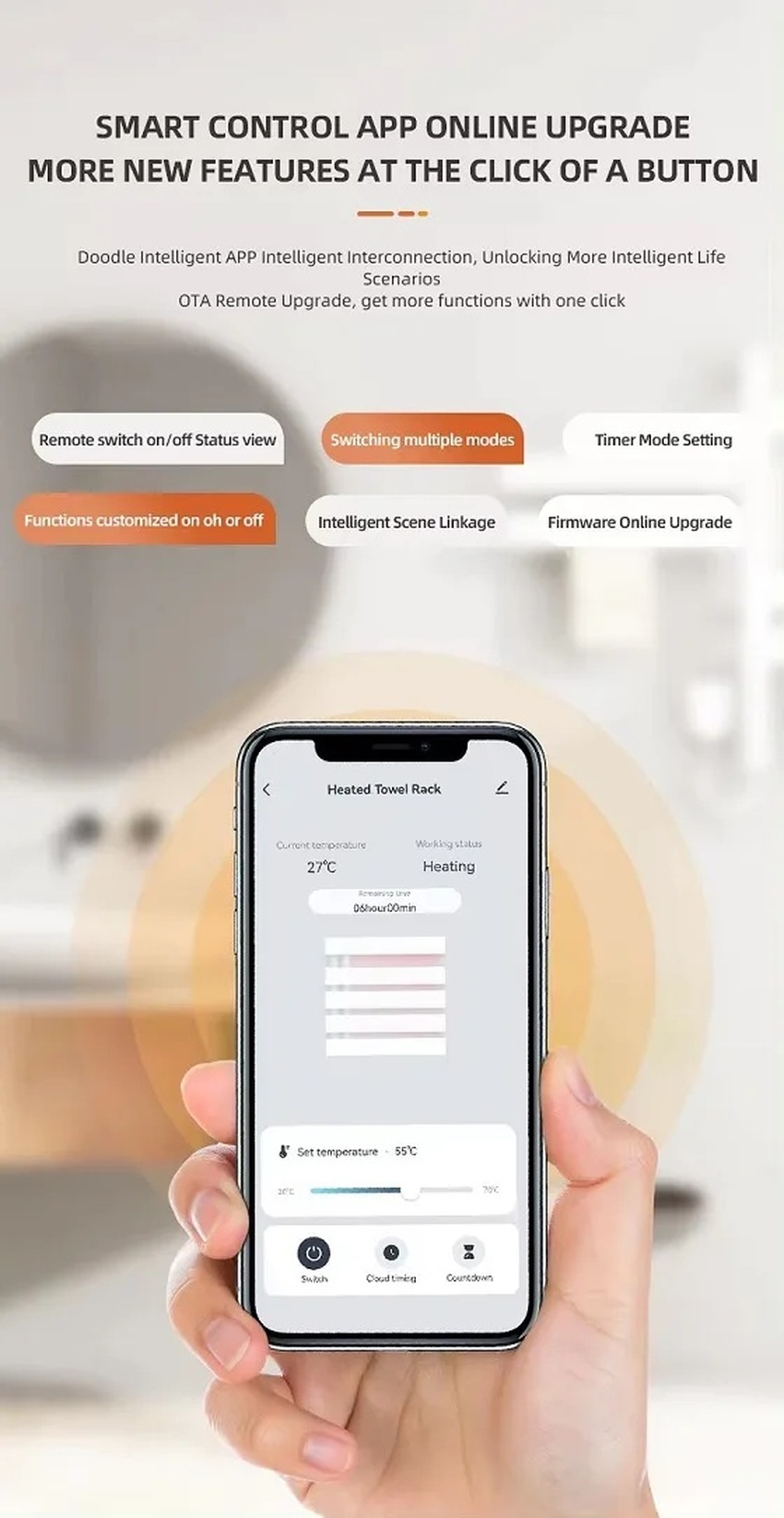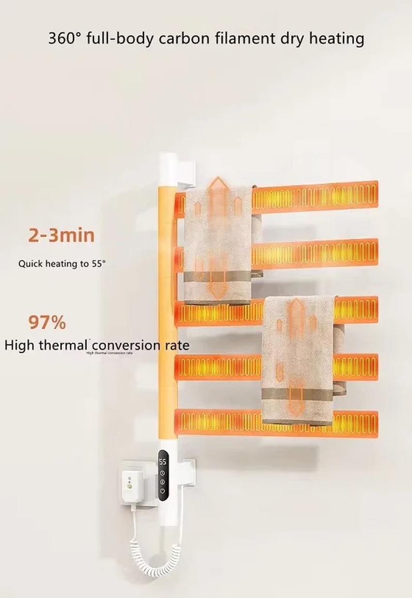 Sản phẩm mang lại sự tiện lợi tối đa khi cho phép người dùng điều khiển từ xa qua ứng dụng điện thoại thông minh. Không chỉ giúp khăn luôn khô ráo, ngăn ngừa vi khuẩn và nấm mốc, mà còn tiết kiệm năng lượng nhờ vào công nghệ sưởi ấm sợi Carbon tiên tiến.