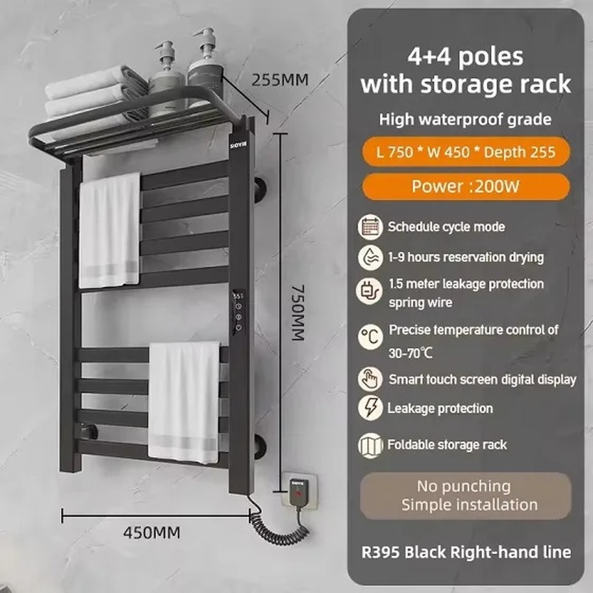 Giới thiệu về Giàn sấy khăn tắm khăn mặt màu đen kết nối APP điện thoại thông minh Miken R395B Wifi
