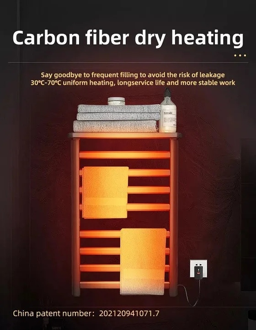 Sản phẩm tích hợp sưởi ấm sợi Carbon, giúp kiểm soát nhiệt độ từ 30℃ đến 70℃, đảm bảo khăn luôn khô ráo và mềm mại. Ngoài ra, với khả năng chống nước IP24, bạn hoàn toàn yên tâm khi sử dụng trong môi trường ẩm ướt.
