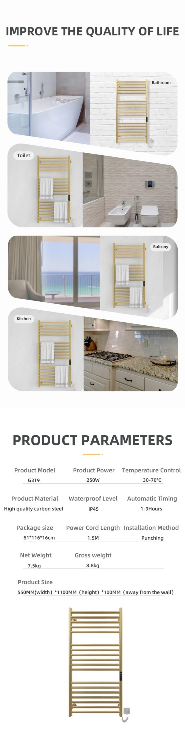 Không chỉ giới hạn trong không gian phòng tắm, Giàn sấy khăn tắm khăn mặt màu vàng Miken G318G còn thích hợp sử dụng tại các spa, khách sạn hay khu nghỉ dưỡng, nơi đòi hỏi sự tiện nghi và hiện đại.