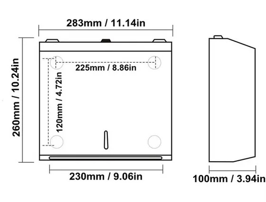 Với kích thước 285x100x260mm, thiết kế của sản phẩm phù hợp với nhiều không gian vệ sinh khác nhau. Bề mặt sản phẩm được xử lý tinh xảo, chống bám bẩn, dễ dàng lau chùi. Hơn nữa, hiệu suất bịt kín cao giúp ngăn ngừa độ ẩm từ bên ngoài, bảo vệ giấy bên trong khỏi tác động của nước.