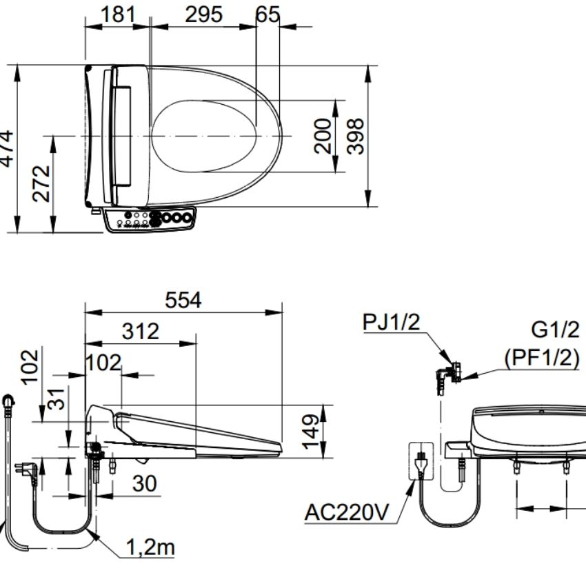 - Tích hợp chức năng sưởi ấm, rửa tự động với nhiệt độ nước điều chỉnh linh hoạt.