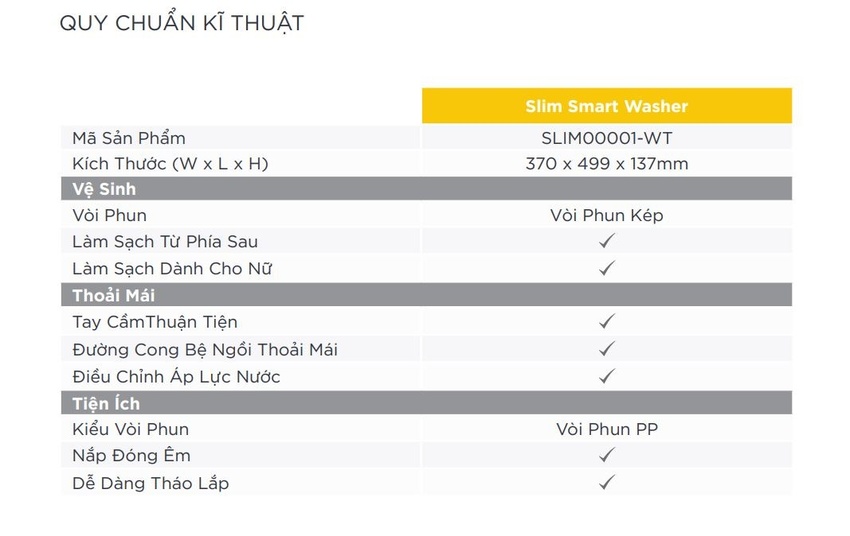 Sản phẩm được thiết kế để hòa hợp với không gian phòng tắm hiện đại, nắp rửa cơ Slim phù hợp cho các căn hộ chung cư, nhà phố hoặc bất kỳ không gian sống nào yêu cầu sự tiện lợi và an toàn trong vệ sinh. Lựa chọn lý tưởng cho gia đình quan tâm đến sức khỏe và môi trường.