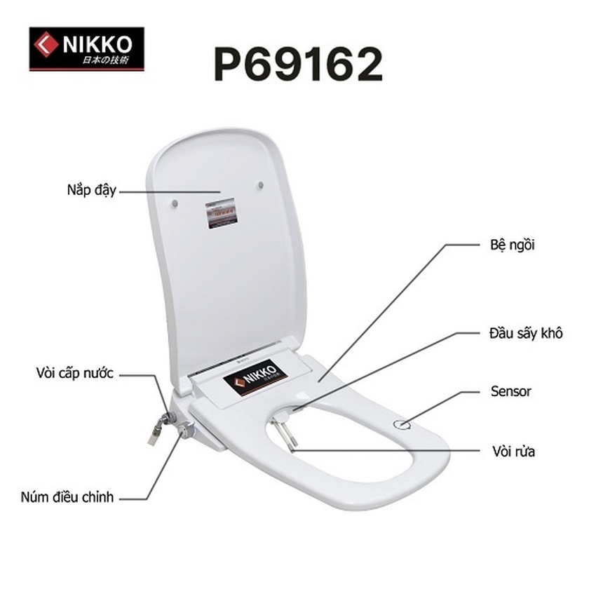 Nắp rửa điện tử thông minh cho bồn cầu Nikko P69162 được thiết kế phù hợp với bồn cầu nắp vuông, mang đến sự hiện đại và tiện ích với công nghệ tiên tiến từ Nhật Bản. Sản phẩm có kích thước dài 515 mm, rộng 375 mm và cao 93 mm, cùng tổng trọng lượng 6.5 kg, phù hợp cho nhiều không gian phòng tắm.