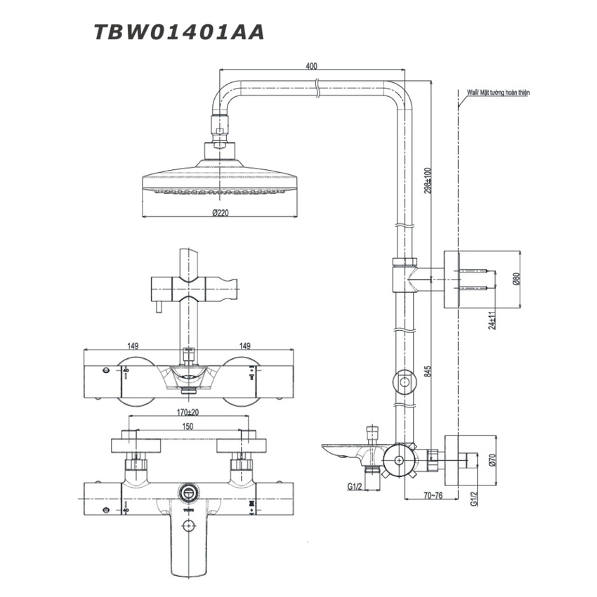 Sen cây nhiệt độ TOTO TBW01401AA dòng G – Sự lựa chọn hoàn hảo cho phòng tắm hiện đại
