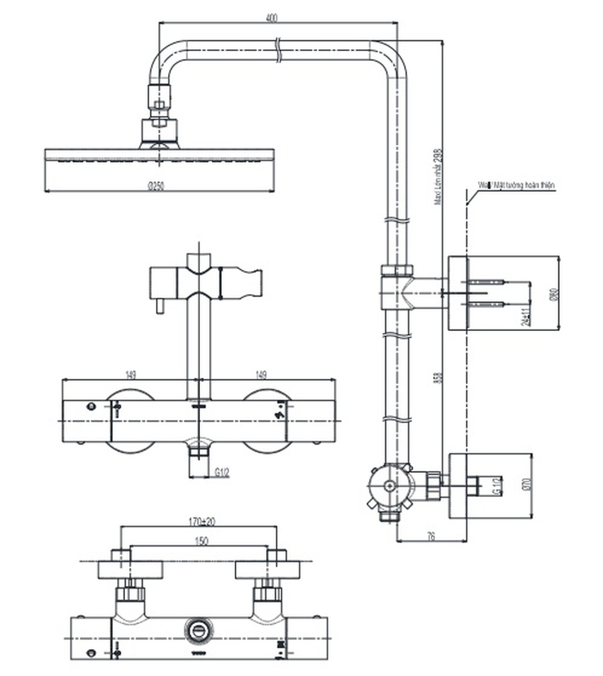 - Chất liệu đồng mạ Crom/Niken cao cấp, chống ăn mòn và bền bỉ.