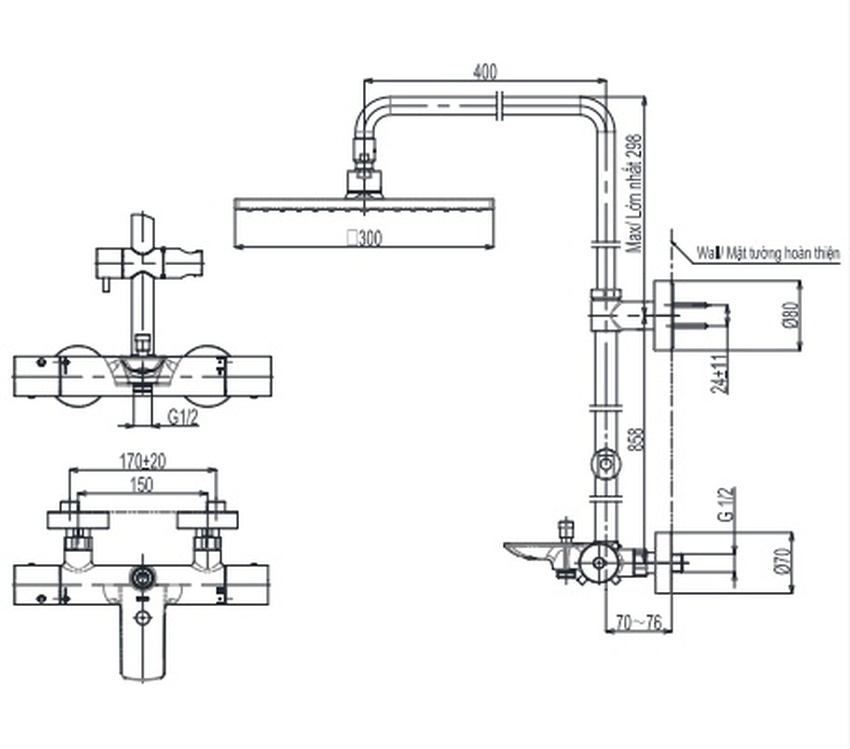 - Tích hợp cả sen tắm đứng và vòi xả bồn, tiện dụng và linh hoạt.