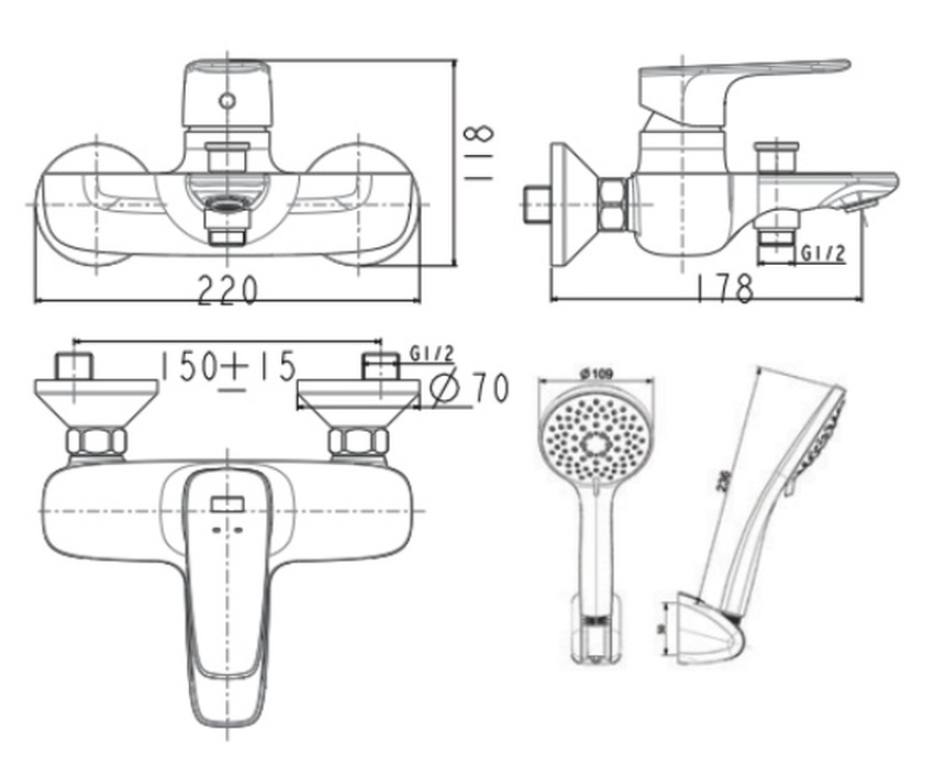 Sen tắm gắn tường American Standard WF-1711 (WF1711) nóng lạnh