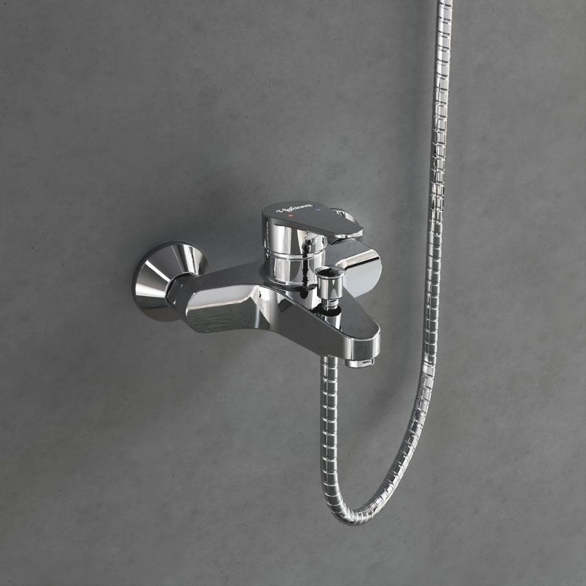 Thiết kế gắn tường của sen tắm giúp tiết kiệm không gian và phù hợp với mọi loại phòng tắm. Bát sen với 3 chế độ massage không chỉ làm tăng diện tích và khối lượng hạt nước mà còn giúp tiết kiệm nước tối đa nhờ công nghệ hòa trộn khí vào nước.