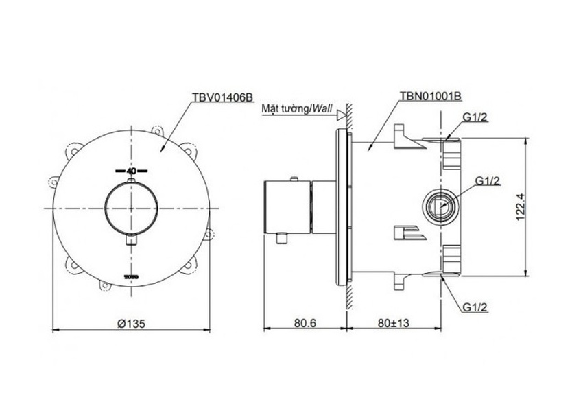Van Điều Chỉnh Nhiệt Độ TOTO TBV01406B Kèm Phụ Kiện Âm Tường TBN01001B