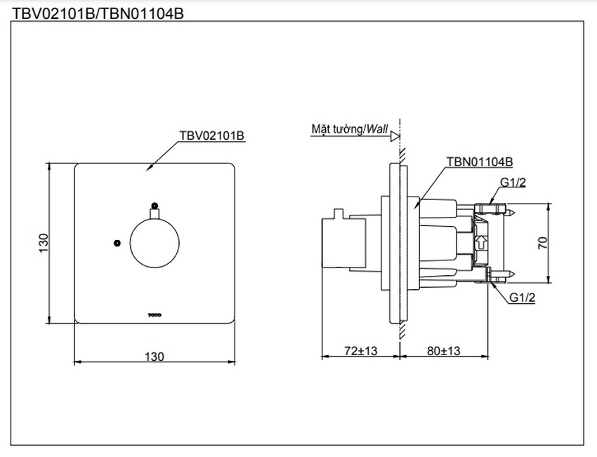 Van dừng TOTO TBV02101B kèm phụ kiện âm tường TBN01104B