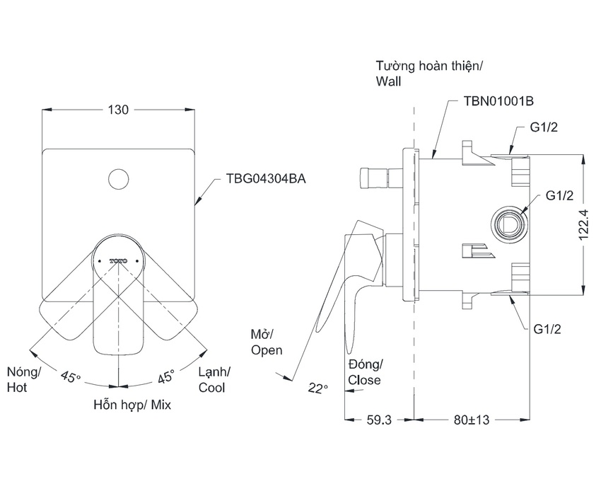 Van Gật Gù Điều Chỉnh Nóng Lạnh Kèm Nút Chuyển Hướng TOTO TBG04304BA