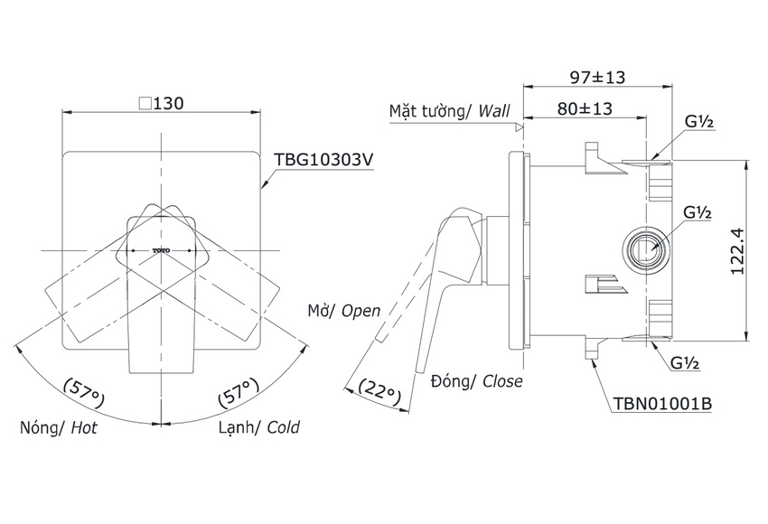 Giới thiệu sản phẩm van gật gù điều chỉnh nóng lạnh TOTO TBG10303VA kèm phụ kiện âm tường TBN01001B