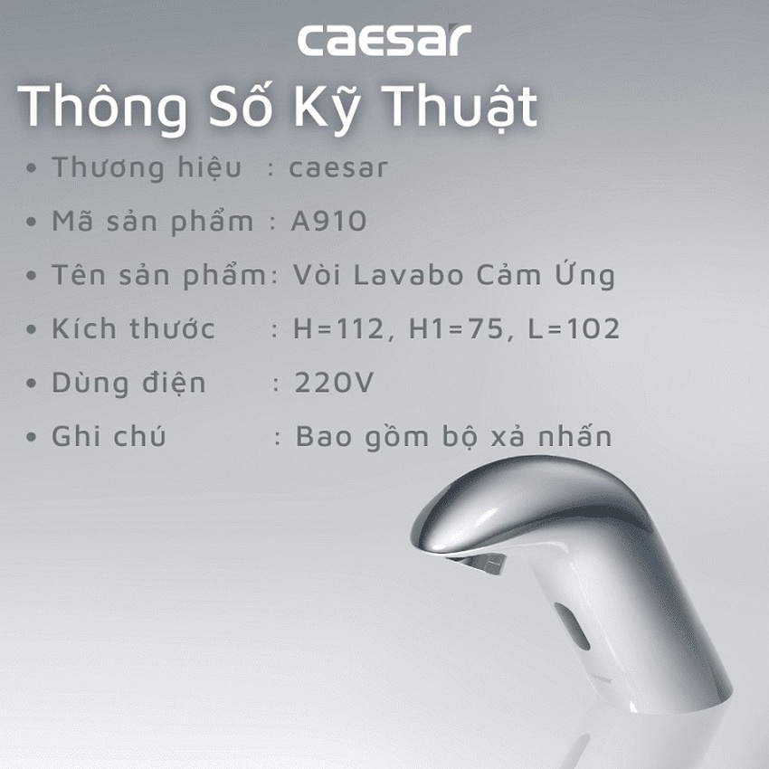 Để biết thêm chi tiết về Vòi chậu lavabo cảm ứng nước lạnh Caesar A910, hãy truy cập tại đây.