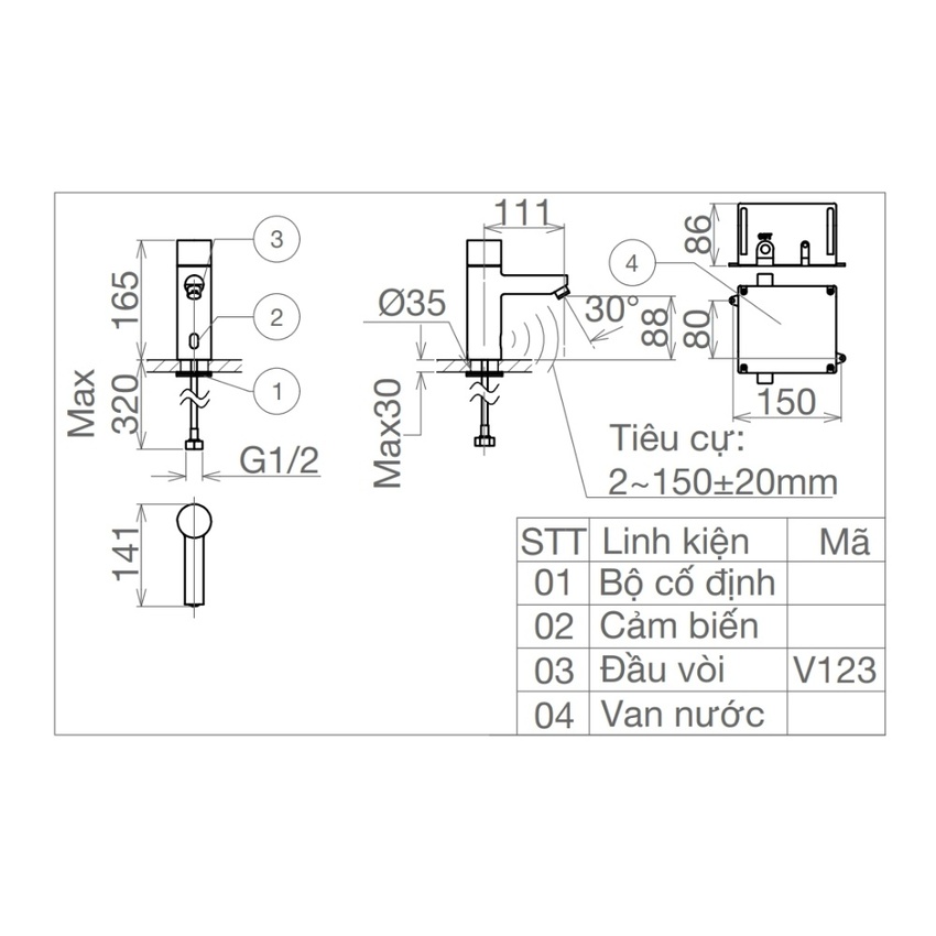 Sản phẩm Vòi chậu lavabo lạnh Viglacera VG1023 được thiết kế với kích thước nhỏ gọn 111 x 44 x 165mm, phù hợp với nhiều không gian phòng tắm. Vòi được trang bị công nghệ cảm ứng tiên tiến, giúp người dùng dễ dàng điều khiển lưu lượng nước mà không cần chạm tay, mang lại sự tiện lợi tối đa.