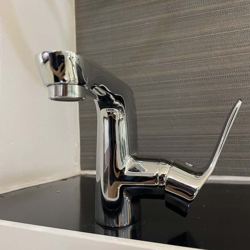Vòi chậu được gia công từ đồng thau nguyên khối, phủ lớp mạ cao cấp chống oxy hóa, giúp sản phẩm luôn sáng bóng và kéo dài tuổi thọ. Đặc biệt, thiết kế tay cầm tiện dụng, dễ thao tác và không gây trơn trượt khi sử dụng.