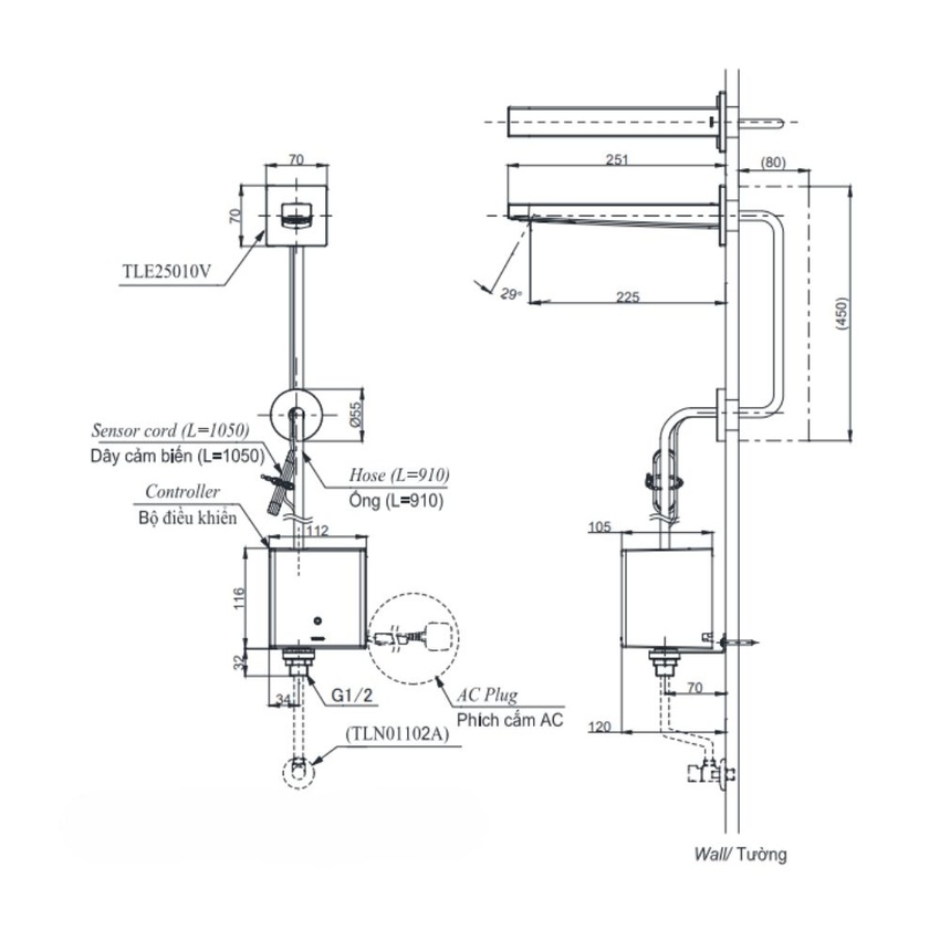 Vòi Lavabo Cảm Ứng Gắn Tường TOTO TLE25010V Nghệ Thuật Và Tiện Ích