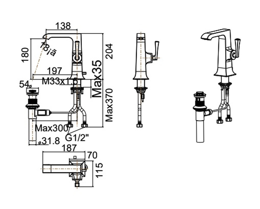 | Chất liệu | Đồng thau nguyên chất, mạ crom |