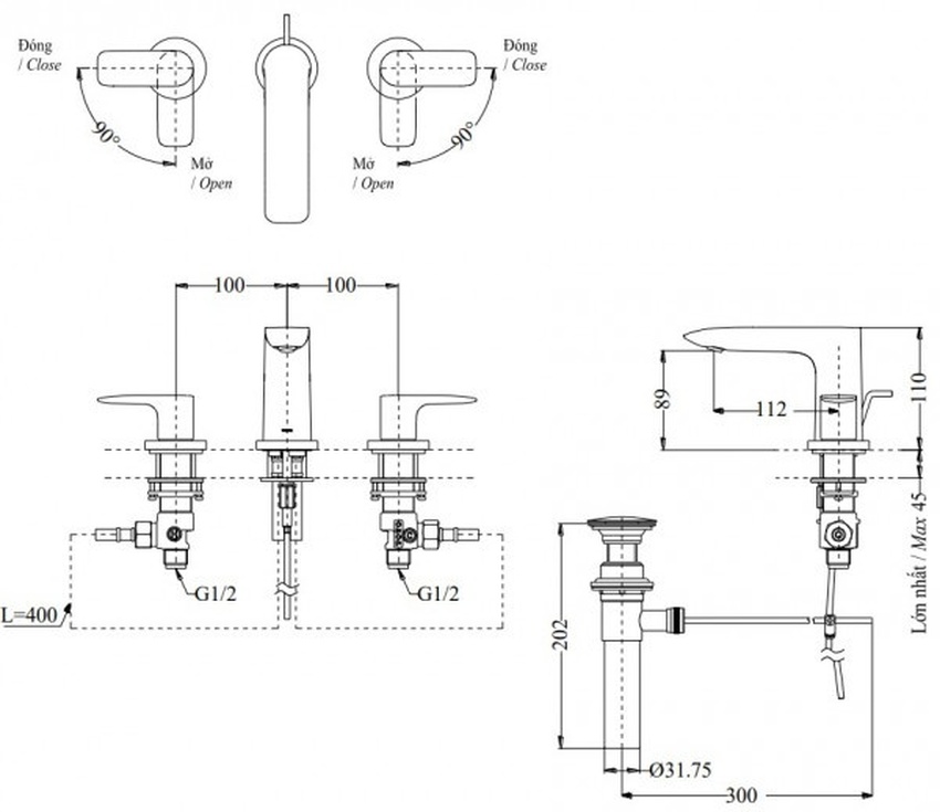 - Chất liệu đồng thau mạ Ni/Cr chất lượng cao, bền bỉ dài lâu.