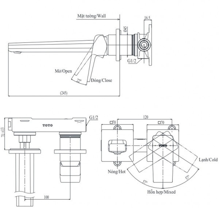 Vòi lavabo nóng lạnh gắn tường GB TOTO TLG10308BB là một sản phẩm cao cấp từ thương hiệu TOTO, nổi tiếng với sự bền bỉ và thiết kế thanh lịch. Với kiểu dáng gắn tường, sản phẩm không chỉ tiết kiệm không gian mà còn tôn lên vẻ sang trọng cho phòng tắm của bạn. Bề mặt được mạ chrome sáng bóng, chống gỉ sét và rất dễ vệ sinh, giữ cho sản phẩm luôn mới mẻ.