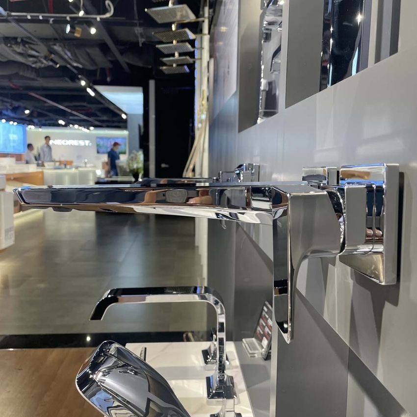Thiết kế gắn tường của sản phẩm không chỉ mang lại sự gọn gàng, tiết kiệm không gian mà còn giúp tăng điểm nhấn cho phòng tắm hiện đại. Sản phẩm được hoàn thiện với lớp mạ chrome sáng bóng, chống bám bẩn và dễ dàng vệ sinh, giữ cho không gian luôn sạch sẽ và sang trọng.