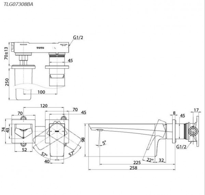 Vòi Lavabo Nóng Lạnh Gắn Tường GE TOTO TLG07308BB
