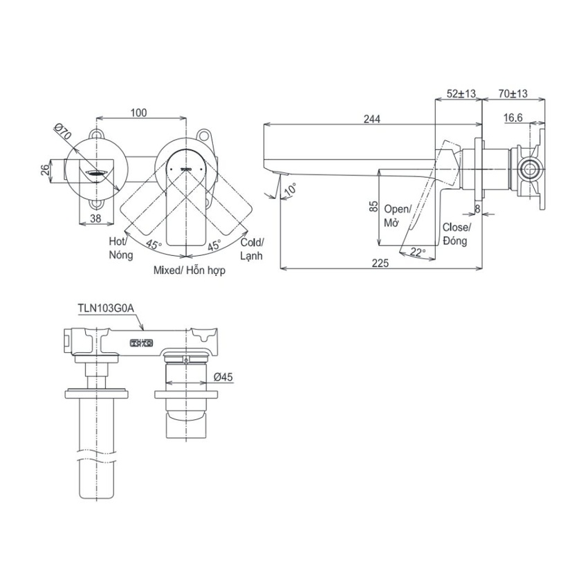 Vòi lavabo nóng lạnh gắn tường GT TOTO TLG13308A – Một sản phẩm không thể thiếu cho phòng tắm hiện đại