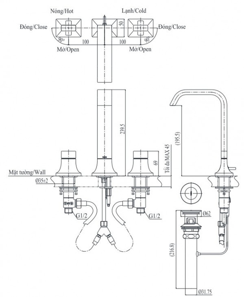 Vòi lavabo nóng lạnh GE TOTO TLG08201B
