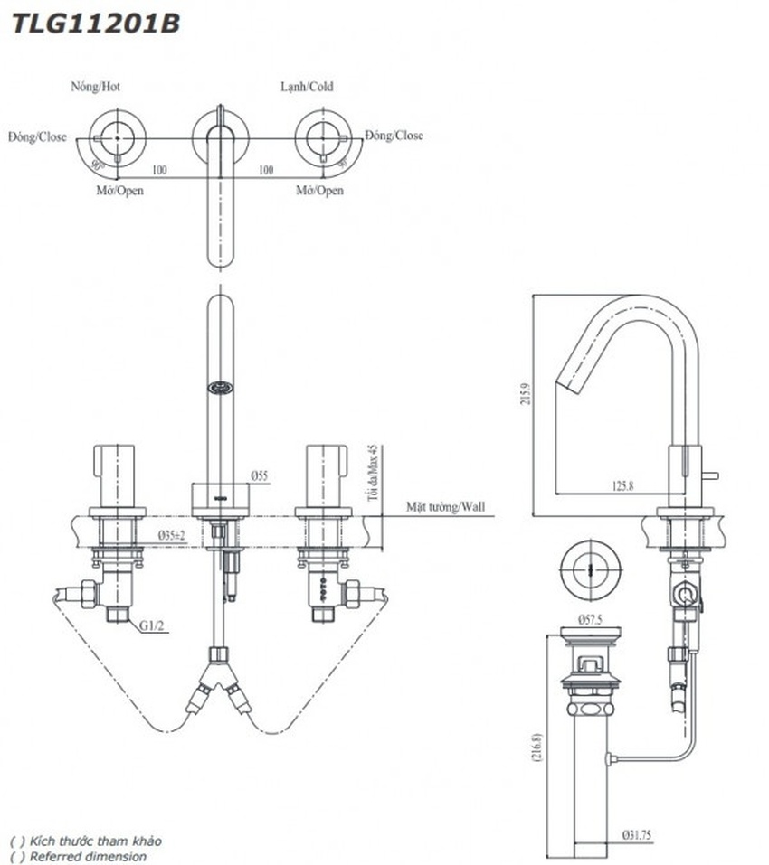 Vòi lavabo nóng lạnh GF TOTO TLG11201B