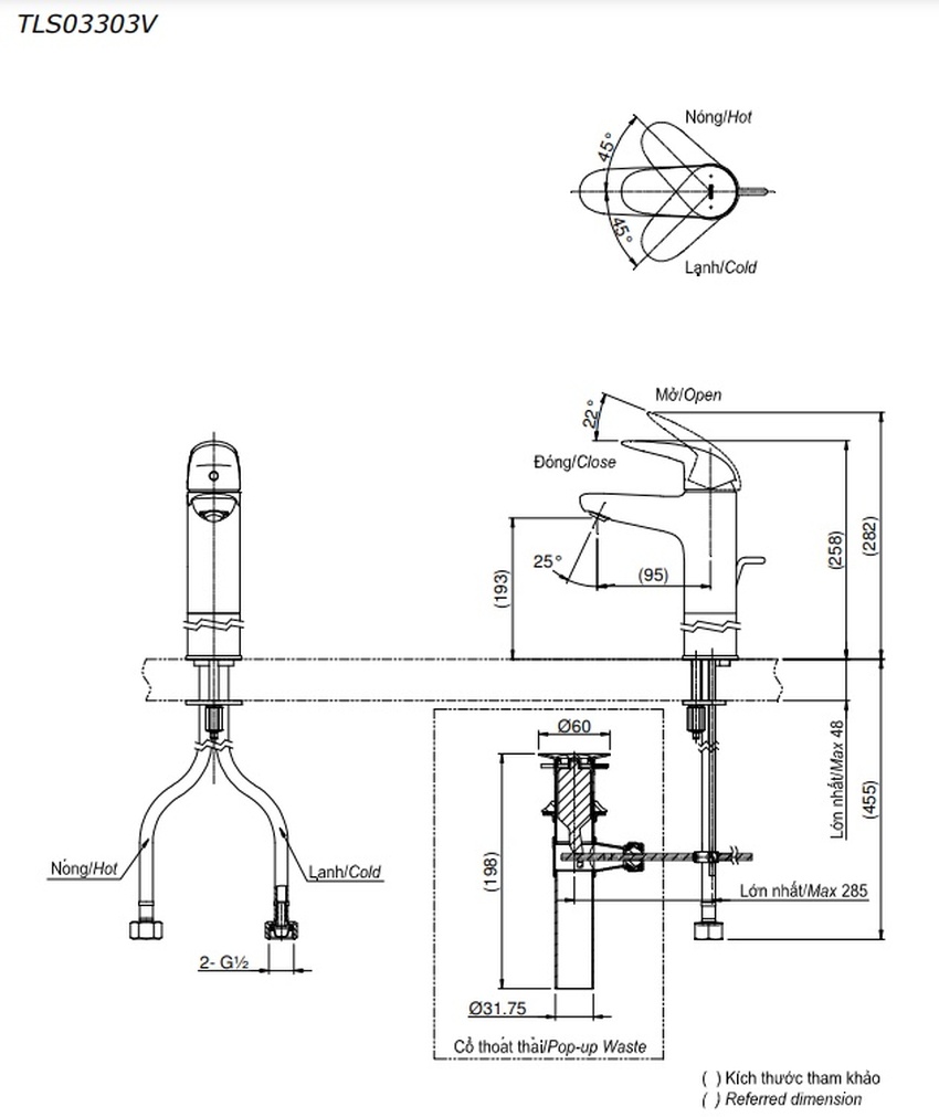 Vòi lavabo nóng lạnh LC TOTO TLS03303V