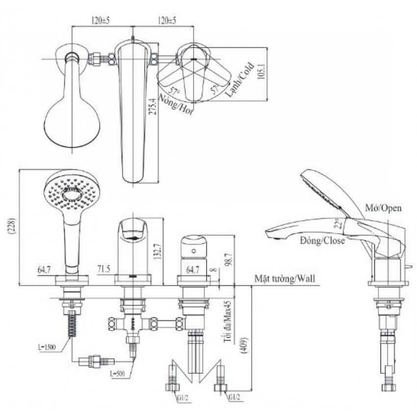 Vòi xả bồn tắm TOTO TBG09305AA nóng lạnh kèm tay sen
