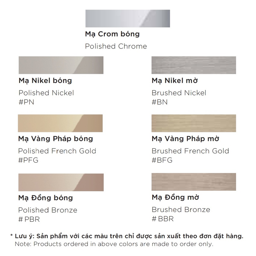 | Chất liệu | Đồng thau mạ Cr/Ni |