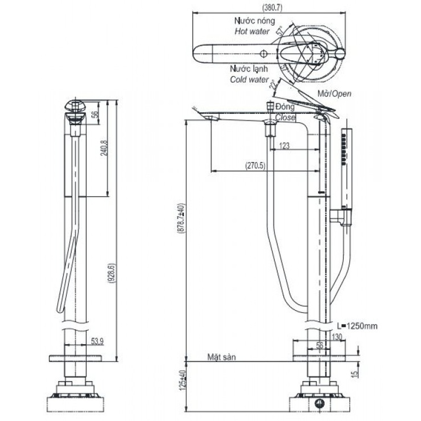 | Loại sản phẩm | Vòi xả bồn tắm đặt sàn |