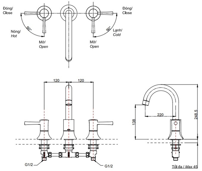 - Chất liệu đồng thau cao cấp và lớp mạ Crom/Niken sáng bóng.